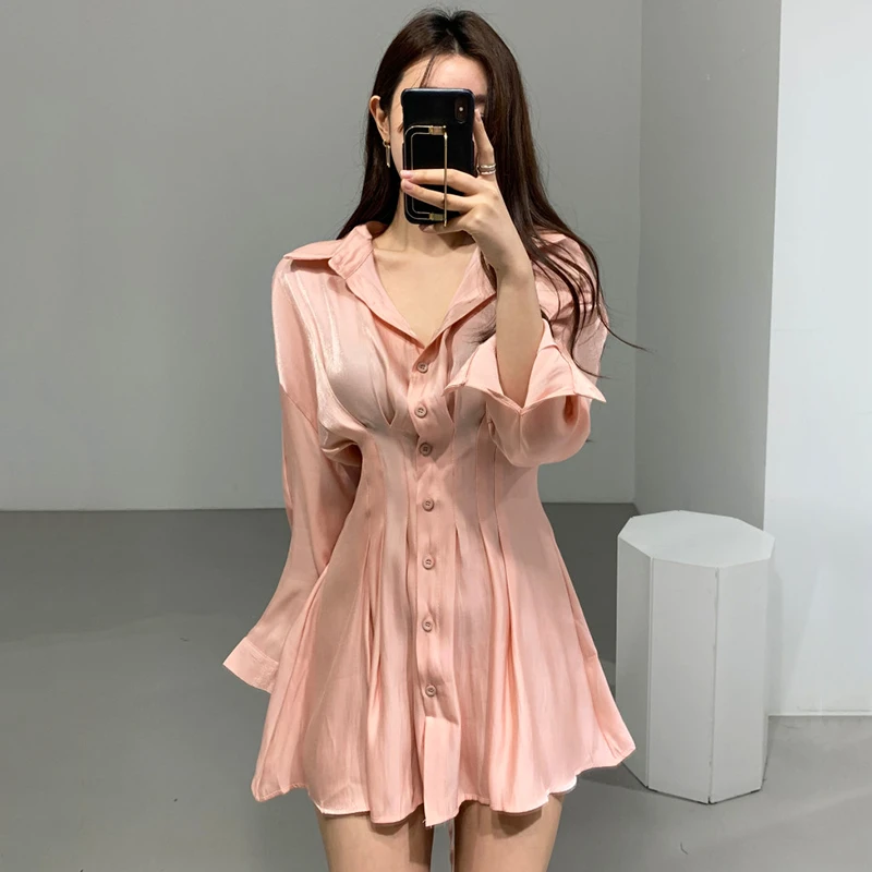 Sibybo кнопки линии мини сексуальный комплект из двух частей платье с длинным рукавом зубчатый осень платье Для женщин Однотонная повседневна...
