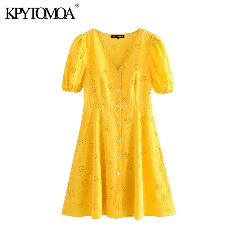 KPYTOMOA женское милое модное мини-платье с вышивкой, винтажное платье с v-образным вырезом и пышными рукавами, женские платья, Vestidos Mujer, 2020