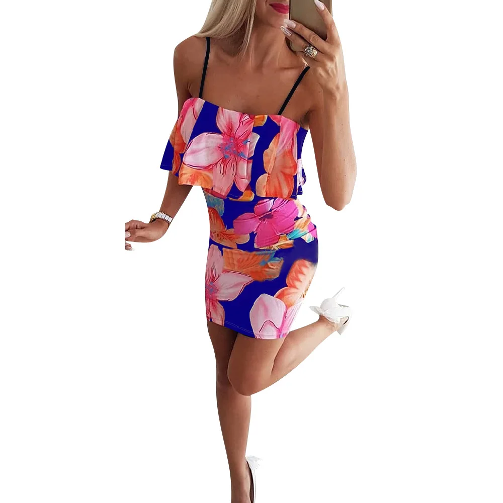 Летний женский легкий цветочный Рисунок модное с лямками спагетти Bodycon Strappy дамское мини-платье для вечеринки короткое платье SJ4093Y