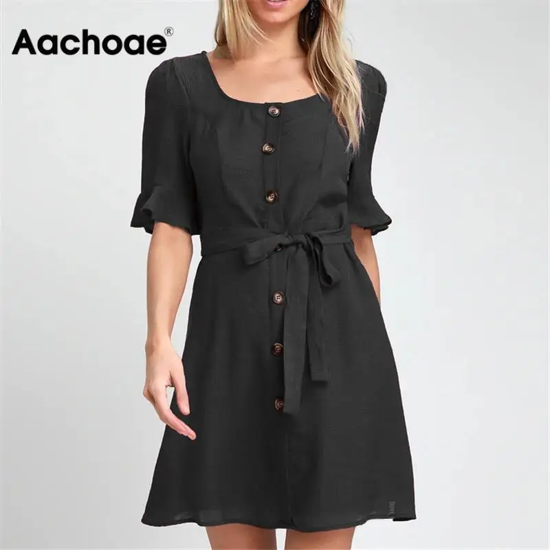 Женское летнее платье повседневное с коротким рукавом элегантные облегающие черное платье для вечеринки пуговицы мини пляжное платье Сара...