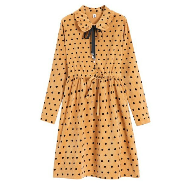 Женское вельветовое платье в горошек оверсайз 2xl женское весеннее новое платье трапециевидной формы с длинным рукавом и отложным воротником длиной до колен 2020