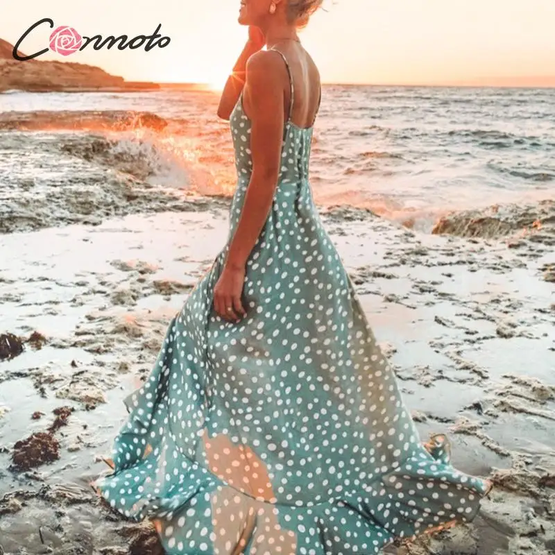 Conmoto, пляжное платье в горошек с оборками, женское платье, летние платья на бретельках, повседневные женские платья длинного размера плюс, ...