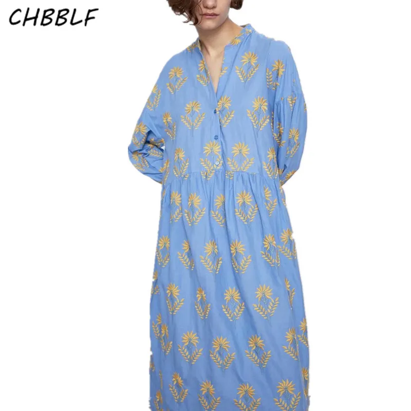 CHBBLF женское стильное платье с вышивкой, с длинным рукавом, Ретро стиль, женские повседневные свободные платья vestidos XDN9415