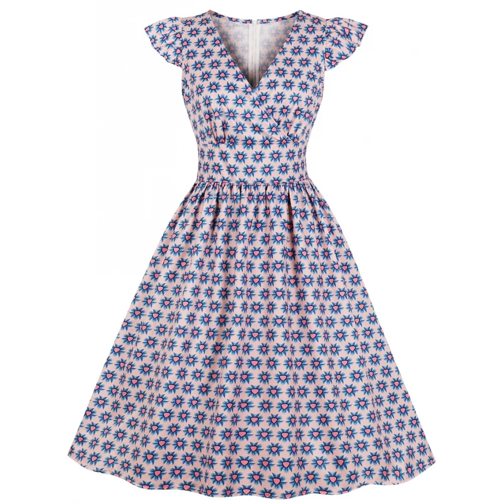 Ретро Цветочный принт платье миди Для женщин синий Пляж Boho пикантные вечерние халат Винтаж элегантные вечерние розовый Высокая Талия летне...