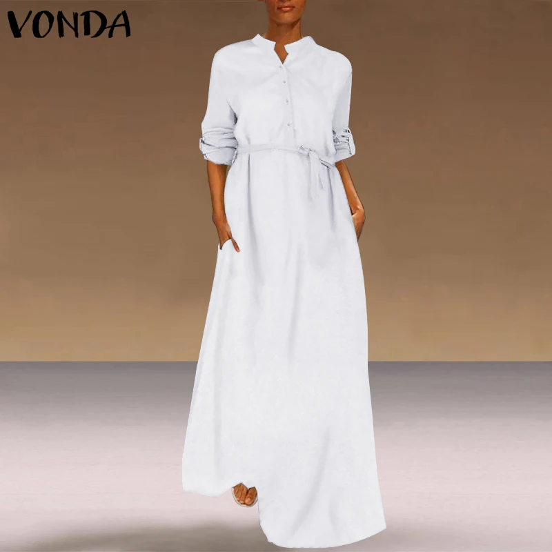 Платье-рубашка размера плюс, женский летний сарафан 2019, VONDA, винтажное повседневное свободное макси платье, туника, Vestidos, v-образный вырез, од...