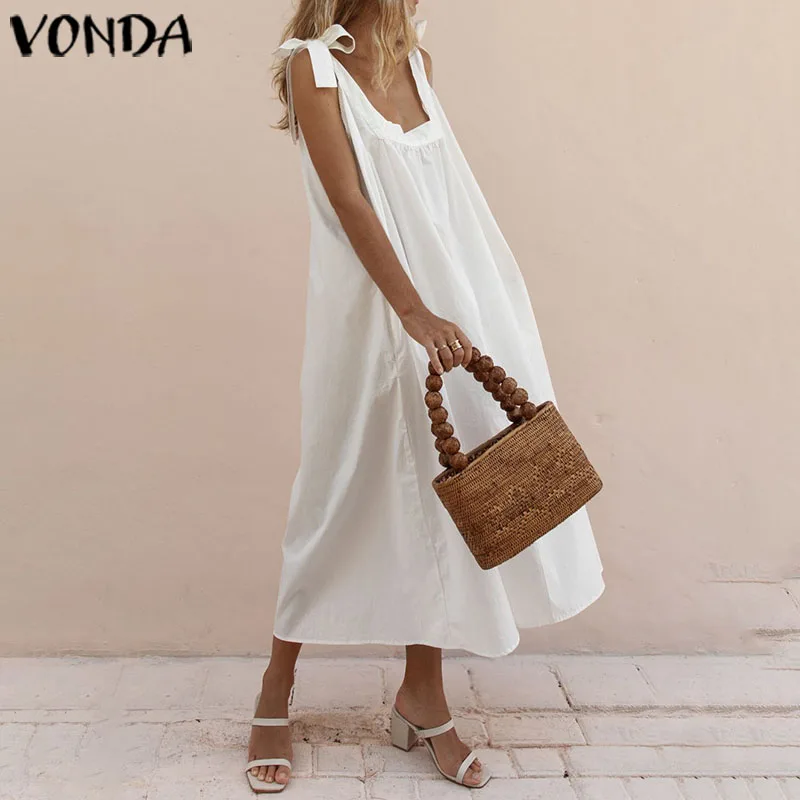 Женский летний сарафан 2019 VONDA винтажное повседневное Хлопковое платье Макси сексуальное без рукавов Женская Туника 5XL Vestidos однотонное плат...