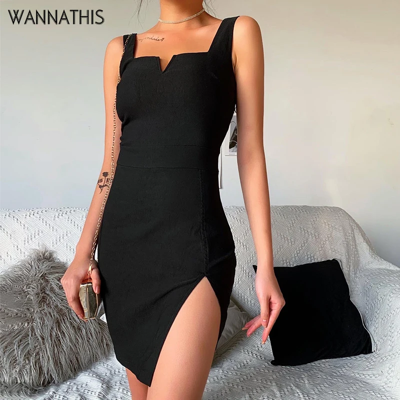 WannaThis/черные мини-платья с вырезом лодочкой и разрезом без рукавов; Модные элегантные вечерние платья; Обтягивающее летнее платье