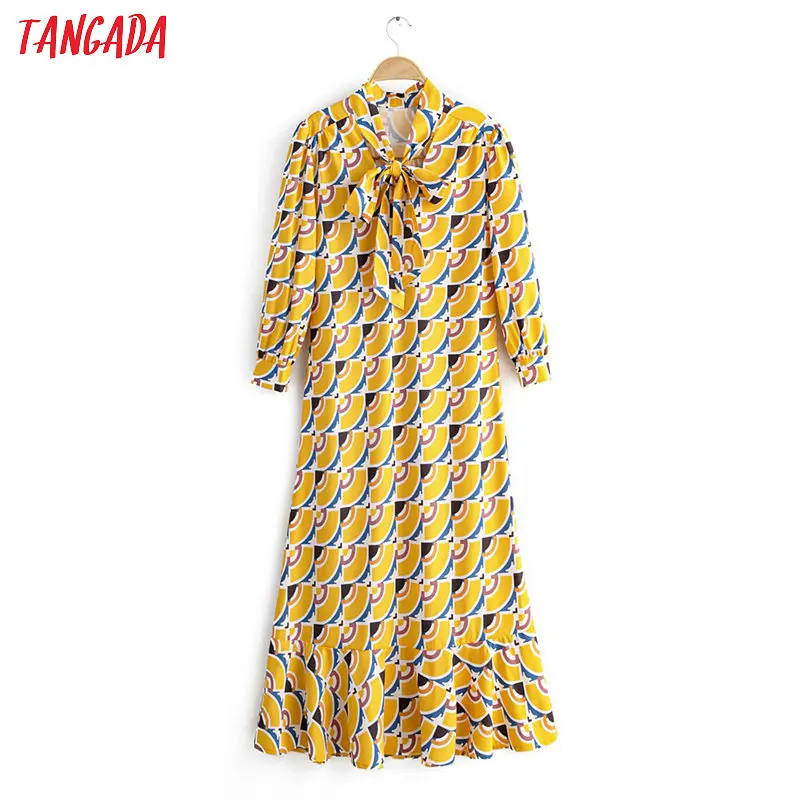 Tangada модное женское желтое платье с принтом и бантом на шее 2020 летнее женское элегантное платье миди Vestidos 2F23