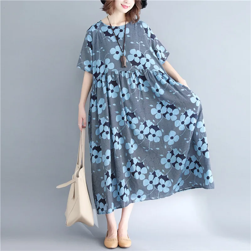 Женское платье с круглым вырезом Johnature, винтажное платье с цветочным принтом больших размеров, лето 2020