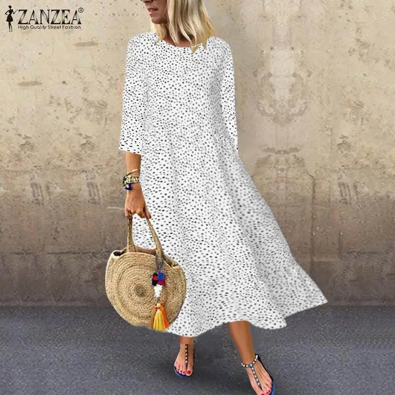 ZANZEA богемное Платье женское платье в горошек с принтом Vestidos 2019 женские праздничные вечерние длинные макси платья Повседневный свободный ха...