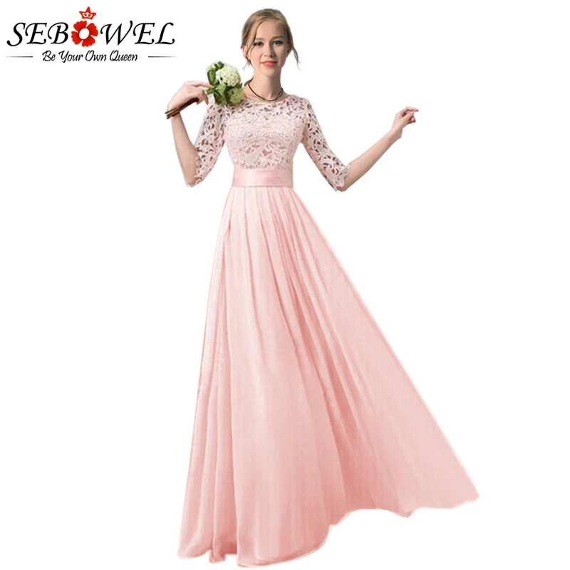 Женское длинное платье SEBOWEL, кружевное плиссированное платье в пол из шифона большого размера для вечеринок