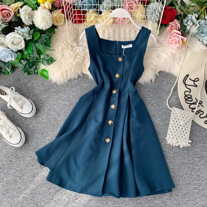 2020 винтажное тонкое летнее осеннее короткое платье на пуговицах, vestido de festa, сарафан на бретелях, Повседневные Вечерние женские платья трапе...
