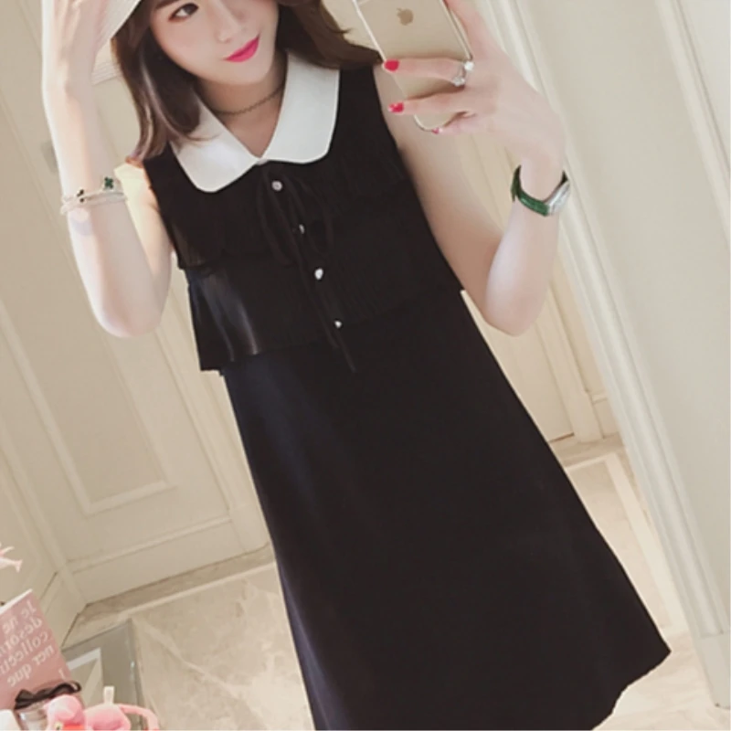 Платье черное для женщин без рукавов Питер Пэн воротник шифон платье А-силуэта 2019 Новая мода офисные женские туфли Femme