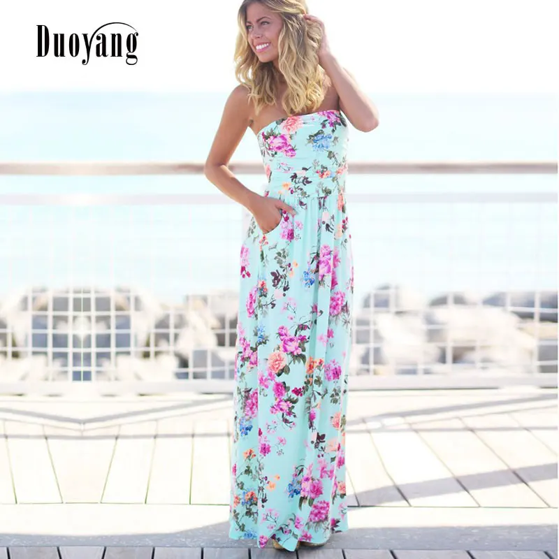 Сексуальное женское платье без бретелек без рукавов Летнее Длинное Платье 2018 Новое с пляжным цветочным принтом пляжное платье женское Макс...