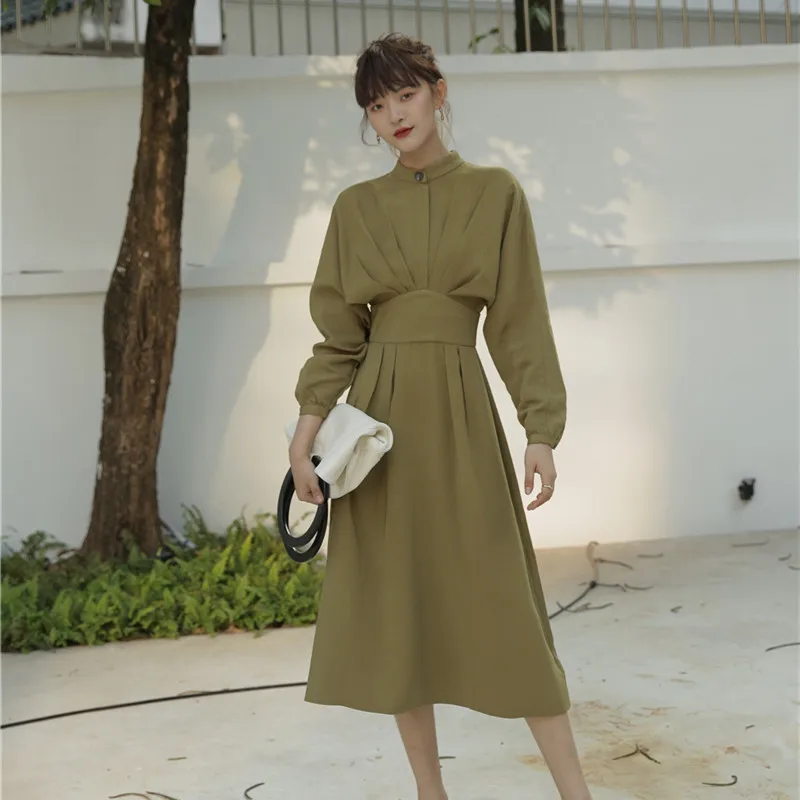 Для женщин Винтаж во французском стиле трапециевидные Вечерние Длинное платье с длинным рукавом и o-образным вырезом, одноцветные женские туфли; Элегантные повседневные платья; Сезон весна; Новинка; Модные платья