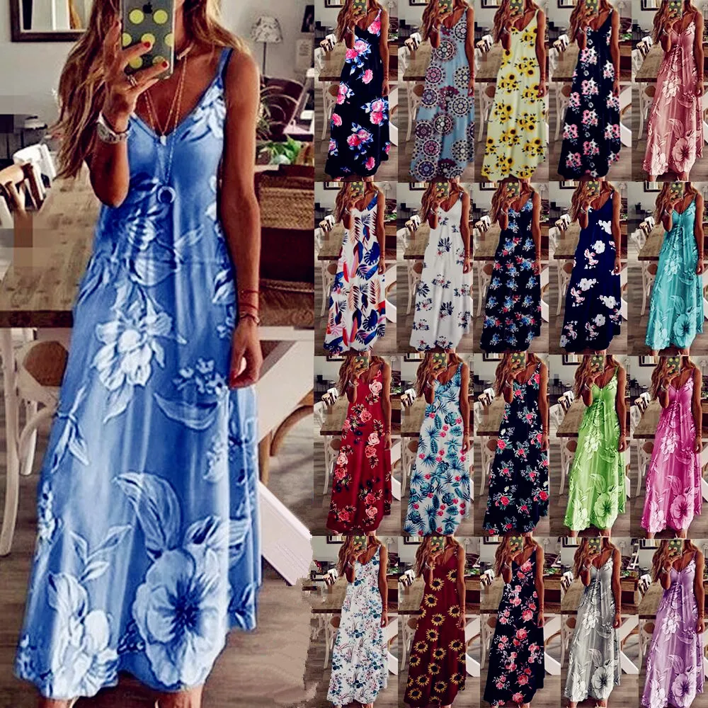 Женское повседневное свободное платье на бретелях, разноцветное летнее Сексуальное Платье макси с бантом в стиле бохо, большие размеры, модель 2020