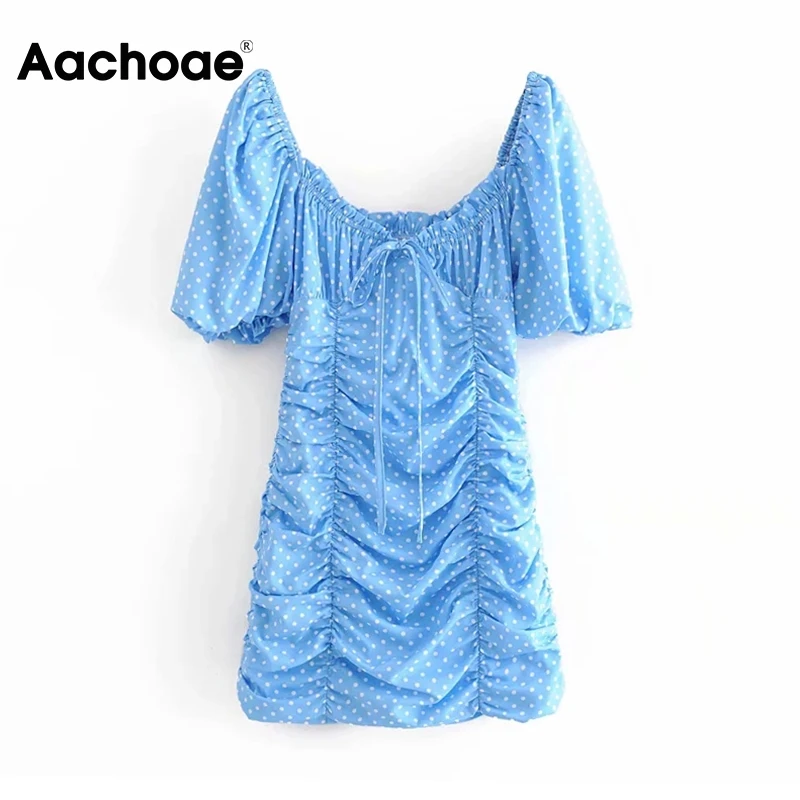 Женское сексуальное облегающее платье в горошек, пышное мини-платье с коротким рукавом и галстуком-бабочкой, летнее платье для вечеринки