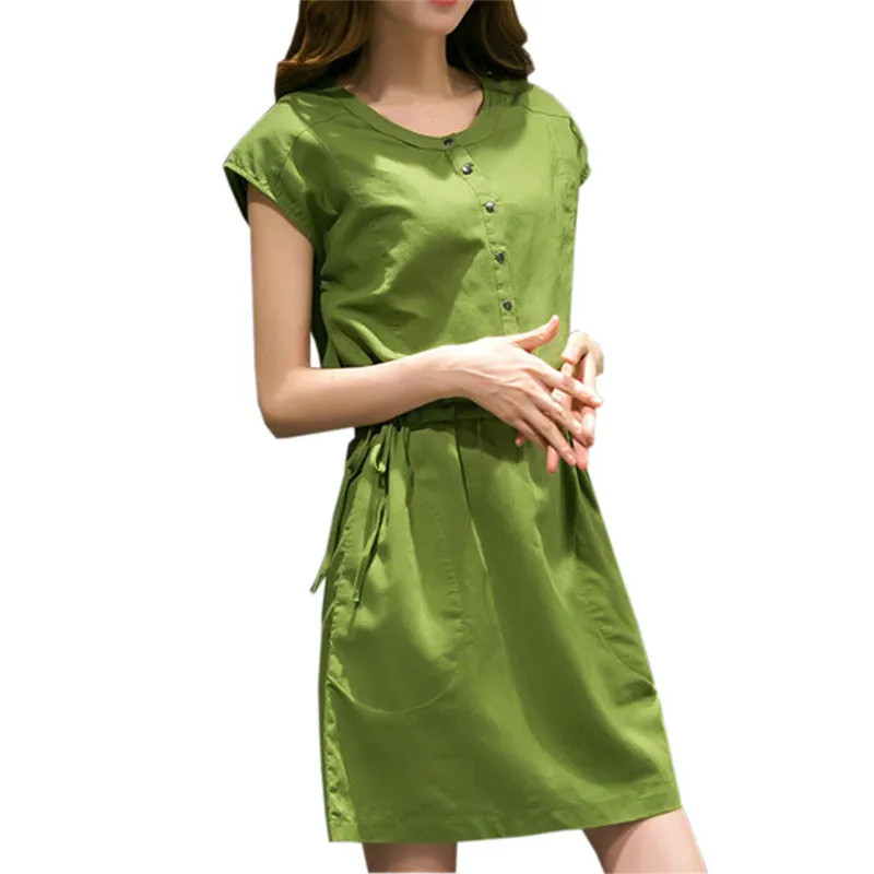 2019 модные женские туфли летние платья короткий рукав с круглым вырезом карман хлопок белье Свободные повседневные платья Vestido Сарафан z0404
