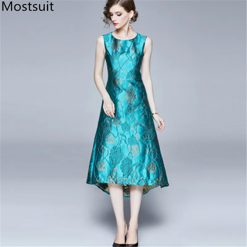 Подиум модное винтажное жаккардовое длинное платье для женщин без рукавов с круглым вырезом элегантное высокое качество женские вечерние платья vestidos