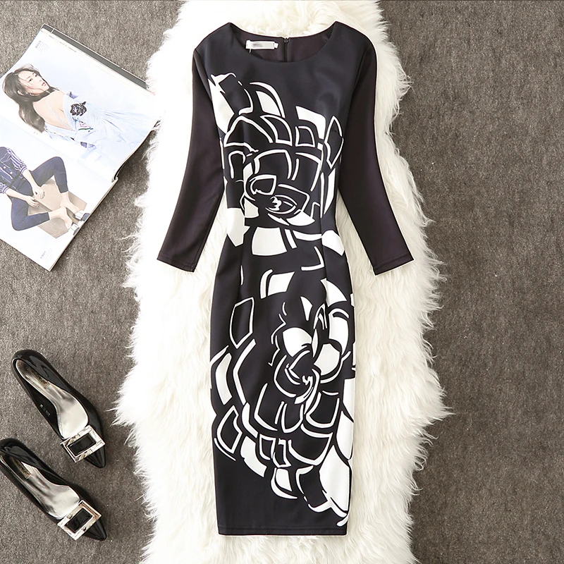 ALABIFU 2019 весна лето платье женское повседневное Плюс Размер Цветочные Длинные вечерние платья офис облегающее платье-карандаш белое Vestidos 4XL