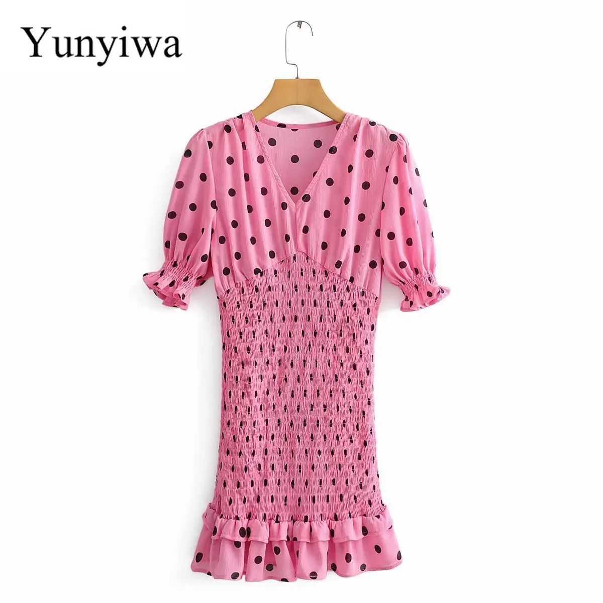 Darlingaga розовое платье в горошек асимметричное летнее платье женское оборки спинки v-образный вырез сексуальное платье модное Мини платья ...