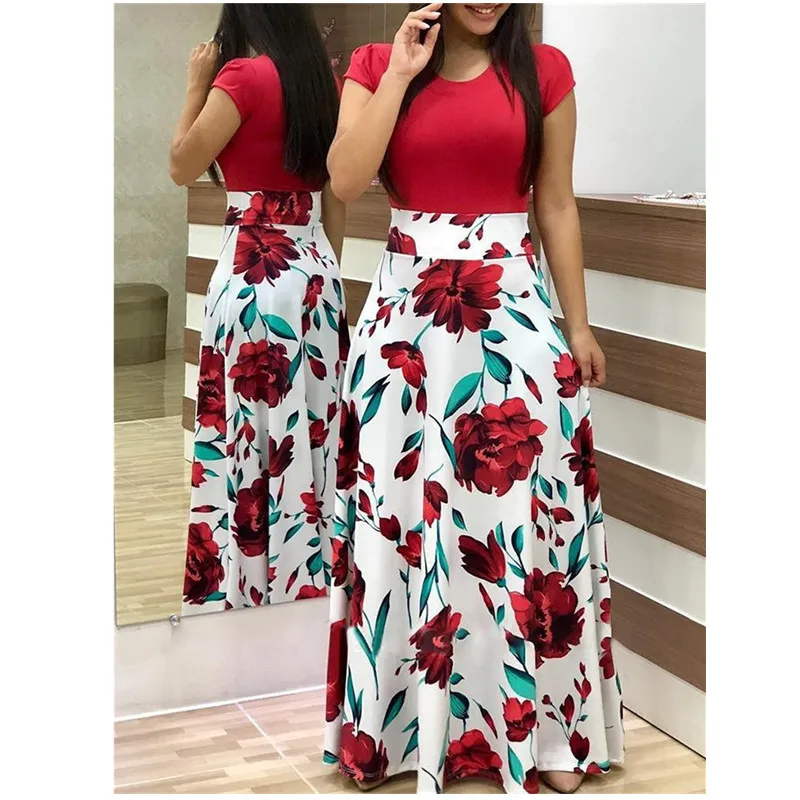 Летнее сексуальное пляжное длинное Бохо женское платье с цветочным принтом, повседневное свободное платье больших размеров, женское плать...