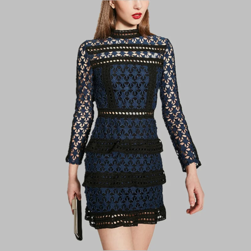 HAMALIEL Лето 2018 г. Self Portrait мини платье женская с длинным рукавом выдалбливают торт Слои элегантный оборками халат кружево Vestidos