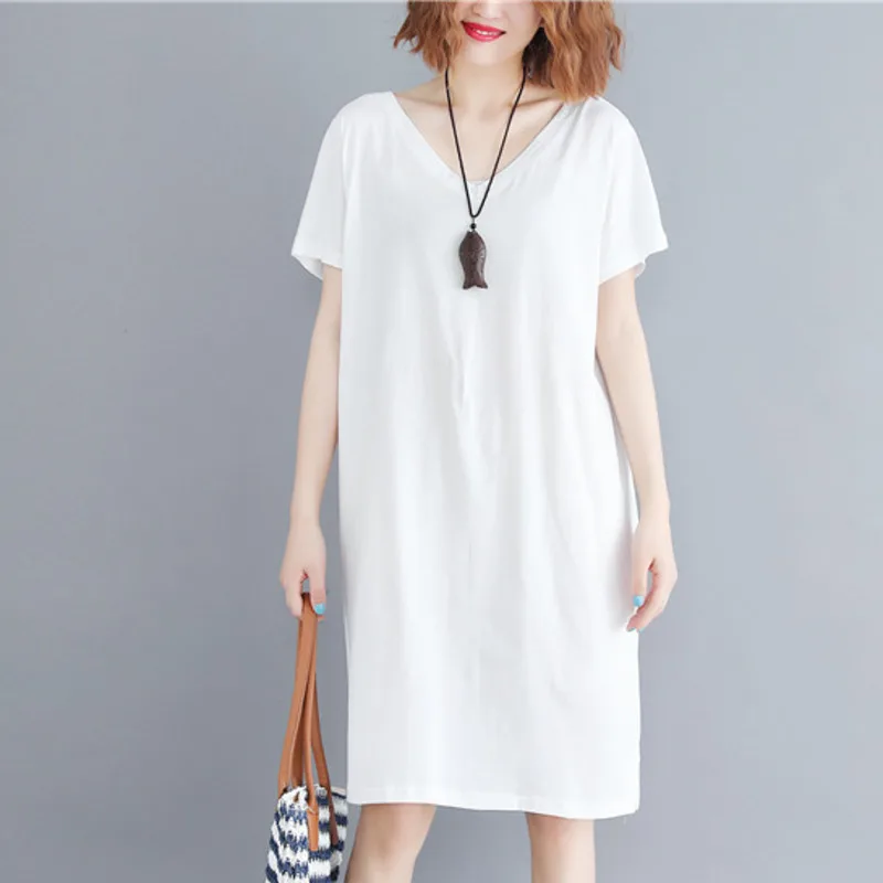 #0104 летнее женское платье-футболка из хлопка с коротким рукавом размера плюс 5XL однотонное платье с v-образным вырезом и открытой спиной
