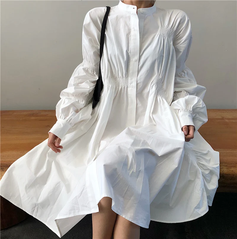 Необычная рубашка с буфами на рукавах женское платье модное с длинным рукавом Свободные женские платья
