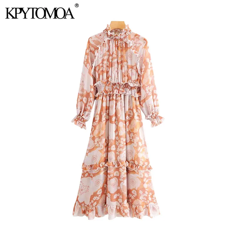Винтажное стильное плиссированное платье миди с цветочным принтом для женщин 2020, модное офисное платье с длинным рукавом и эластичной талией, женские платья Vestidos