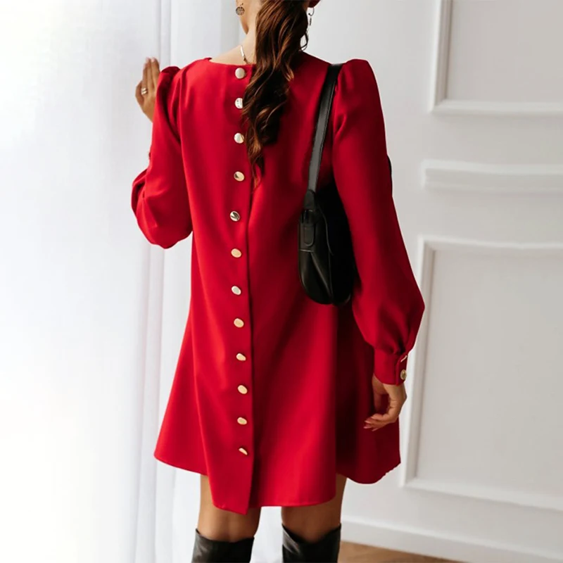 Черное женское мини-платье трапециевидной формы с круглым вырезом и пуговицами, винтажные женские платья с длинным рукавом-фонариком 2020, весенние женские платья размера плюс 3XL