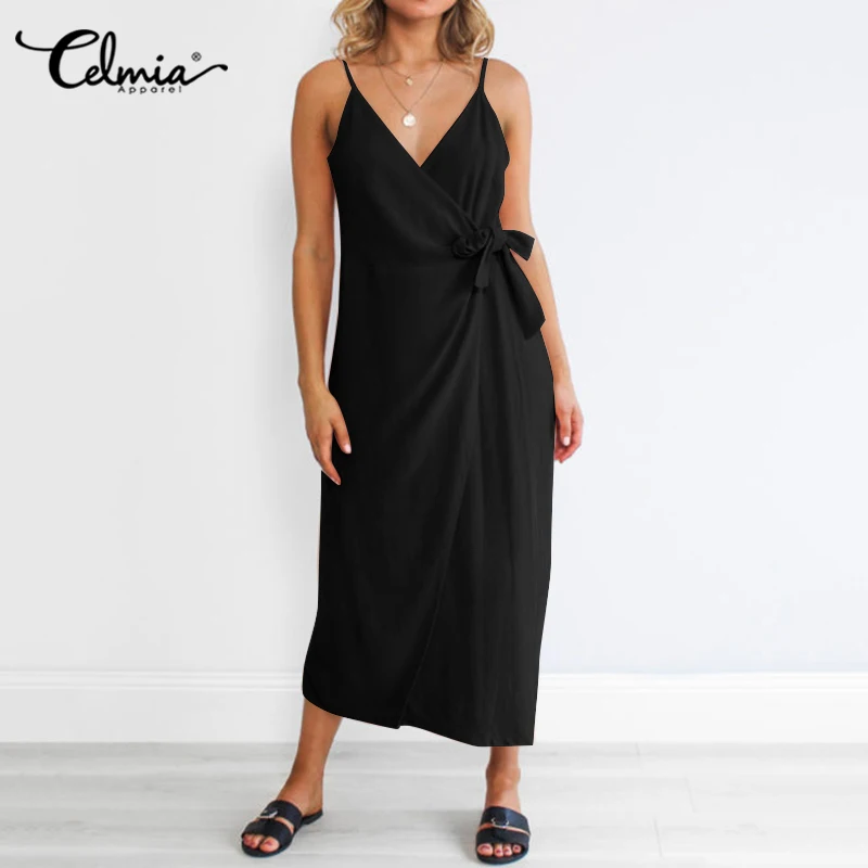 Women Sexy Spaghetti Straps Long Sundress 2020 Celmia Summer Dress Casual Backless Asymmetrical Sleeveless V Neck Beach Vestidos