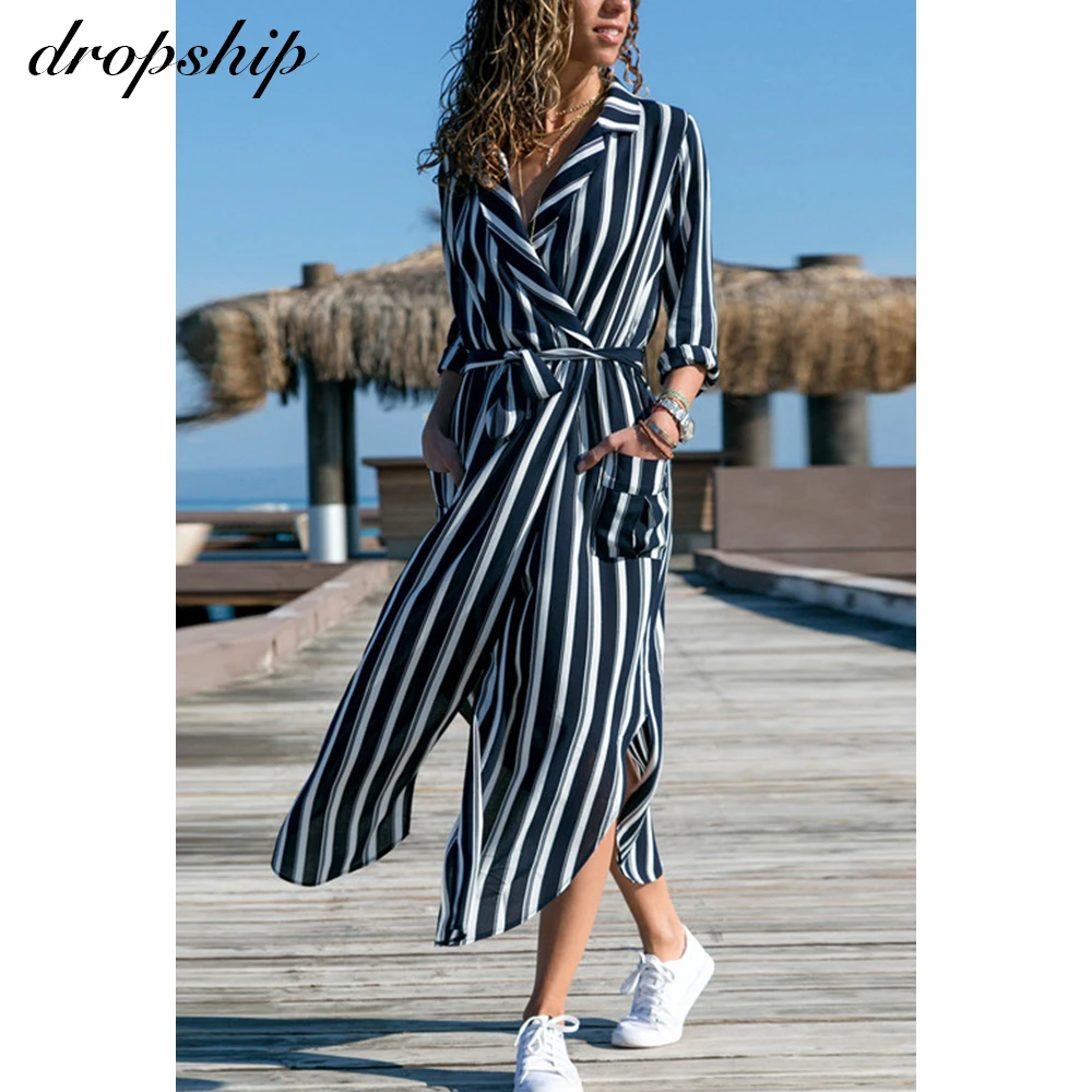 Лето женщины сексуальный без рукавов с отложным воротником в полоску пуговицы платья дамы элегантный свободного покроя тонкий забинтованн...