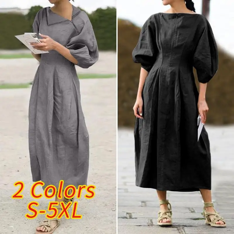 VONDA 2020 повседневное летнее платье свободные однотонные вечерние платья до середины икры 5XL богемные вечерние платья элегантные вечерние платья S-5XL