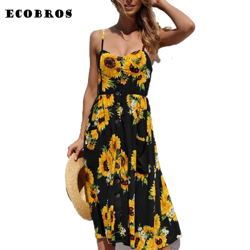 ECOBROS 2019 Новое Женское летнее платье повседневное без рукавов свободное с цветочным принтом Мини платья Плюс Размер Женская одежда платье ...