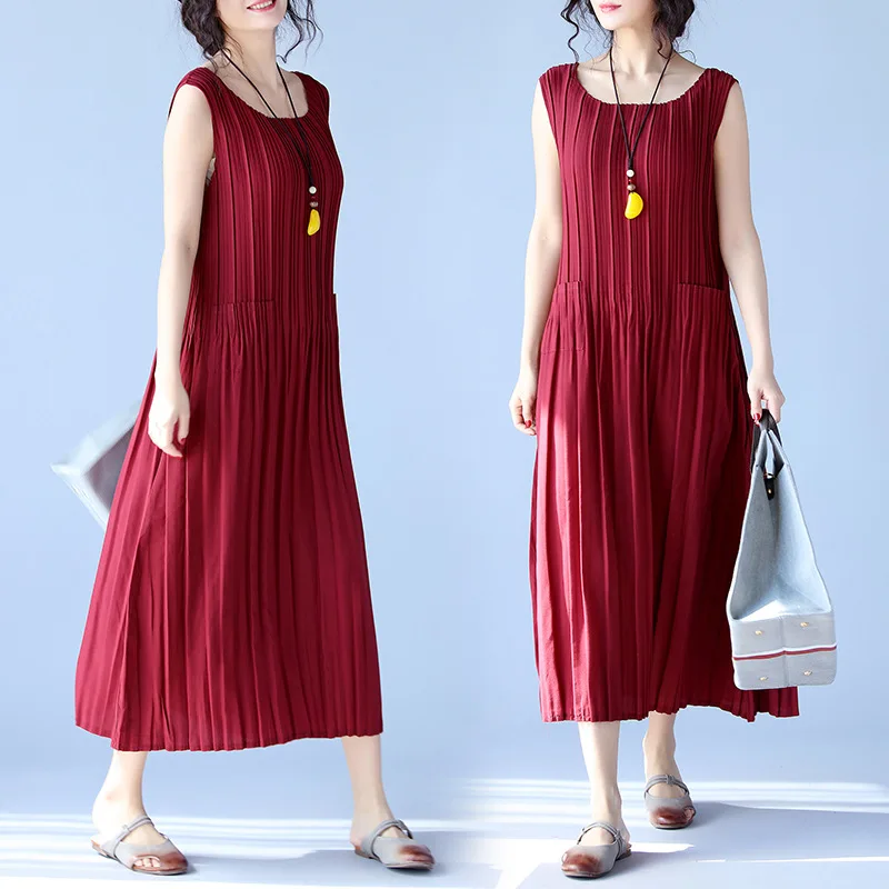 2XL 3XL длинные гофрированные шифоновые платья Плюс Размер Повседневное однотонное платье-жилет с карманом свободное летнее платье женское б...