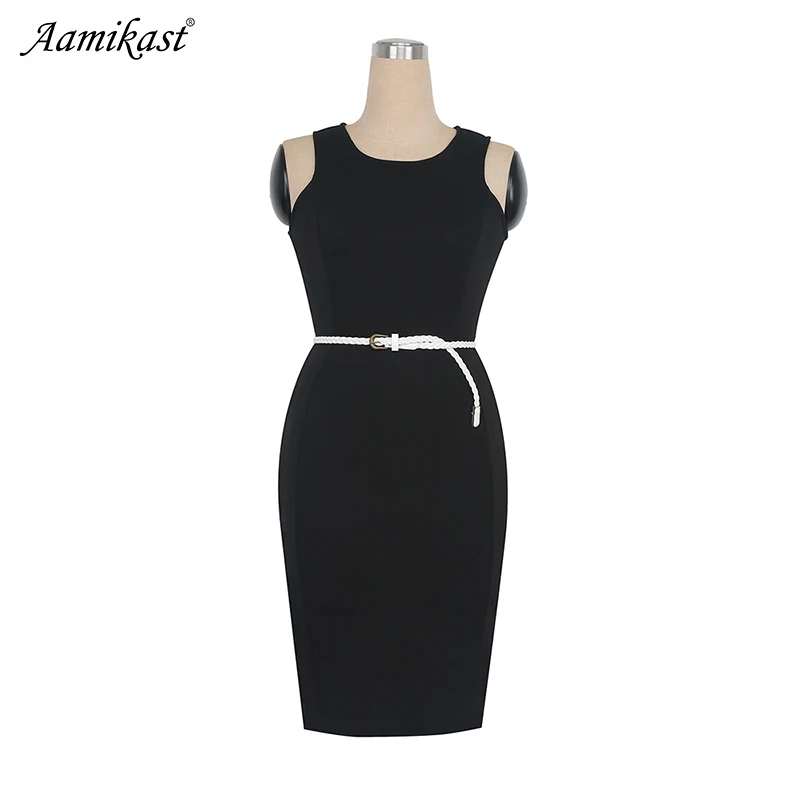 Aamikast 2019 Женские Элегантные без рукавов костюмы с поясом на работу офис Бизнес вечерние Повседневное Лето Bodycon Тонкий облегающее платье-футл...
