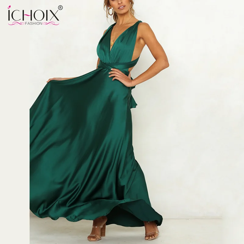 2019 элегантное женское длинное вечернее платье сексуальное с глубоким v-образным вырезом без спинки макси платье в стиле бохо пляжное платье...
