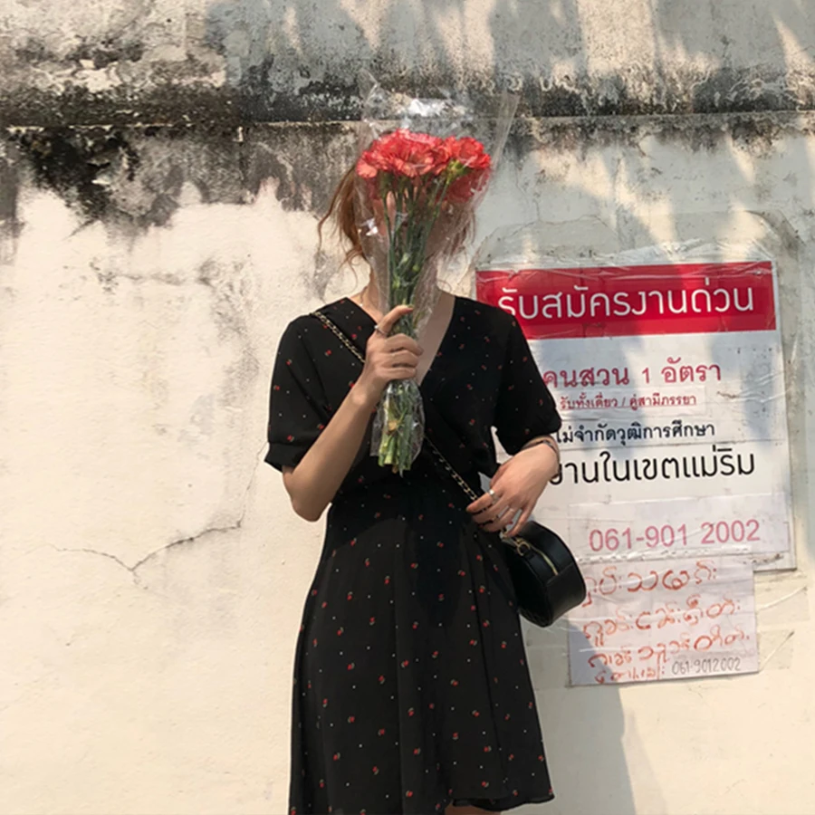 2019 летнее Новое поступление сексуальное платье женское тонкое Вишневое печатное платье на бретельках мини платье модное Vestido Холтер Корто ...