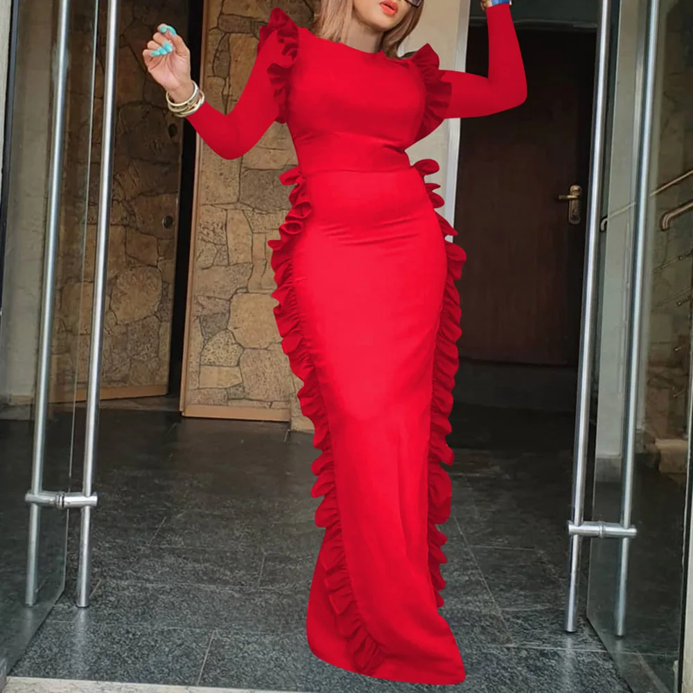 Длинное женское прямое платье с оборками фиолетового цвета, длина до пола, облегающее платье с высокой талией, 2019, Африканское женское Макси...