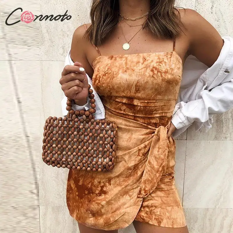Conmoto, Пляжное, сексуальное, Пляжное, летнее платье, для женщин, с бантом, на тонких бретелях, женское платье, для клуба, повседневное, с запахом...