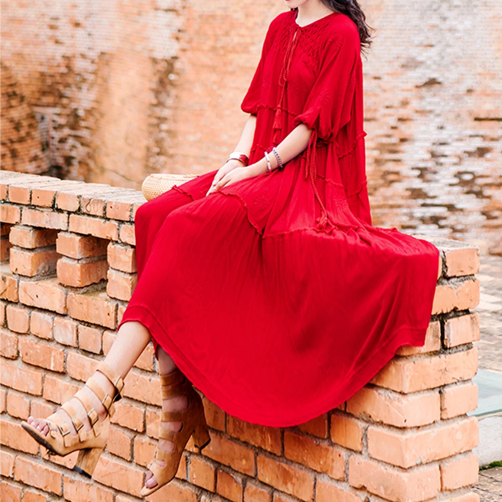 Женское длинное платье Sandbeach, свободное красное пляжное платье большого размера на лето