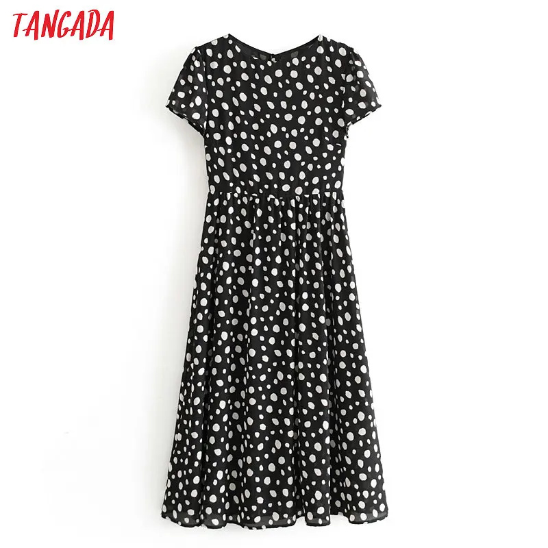 Женское винтажное платье Tangada, элегантное шифоновое платье в горошек с круглым вырезом и коротким рукавом, 6M08