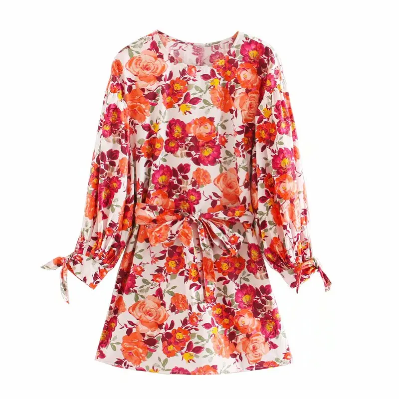Летнее Новое модное женское платье с цветочным принтом ZA мини-платье с пышными рукавами и бантом на поясе 2020 женские повседневные пляжные платья женские платья vestidos