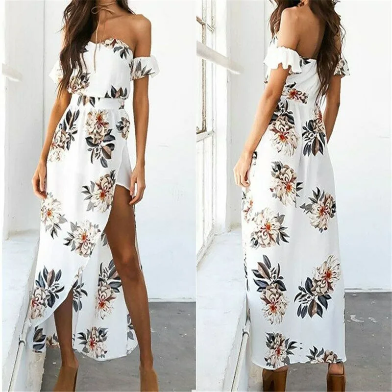 Женские повседневные платья с открытыми плечами Boho Цветочные Сплит длинный Макси летние пляжные платья Verano 2019 летние платья Новые