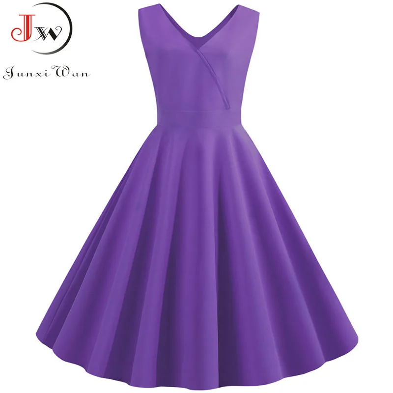 Элегантное однотонное летнее платье для женщин 2019 повседневное без рукавов с v-образным вырезом миди винтажные вечерние платья для офиса ро...