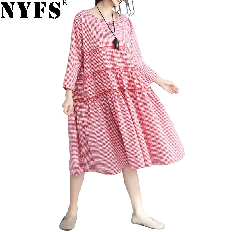 NYFS 2019 Новое весеннее женское платье винтажное хлопковое льняное свободное клетчатое длинное платье vestidos robe платья