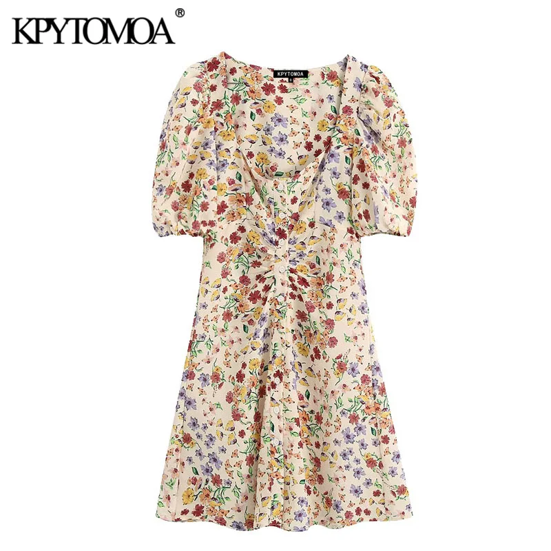 Женское винтажное мини-платье KPYTOMOA, винтажное платье с v-образным вырезом и рукавами-фонариками, модель 2020