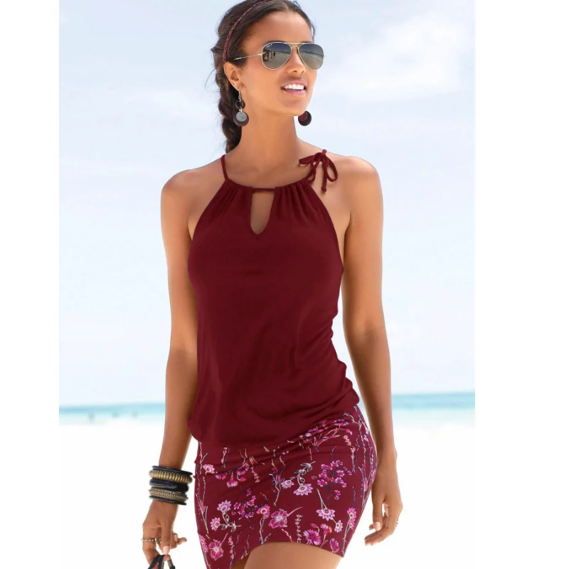 Женское летнее облегающее пляжное платье с цветочным рисунком, с бретелькой на шее, без рукавов, Повседневный Сарафан XRQ88