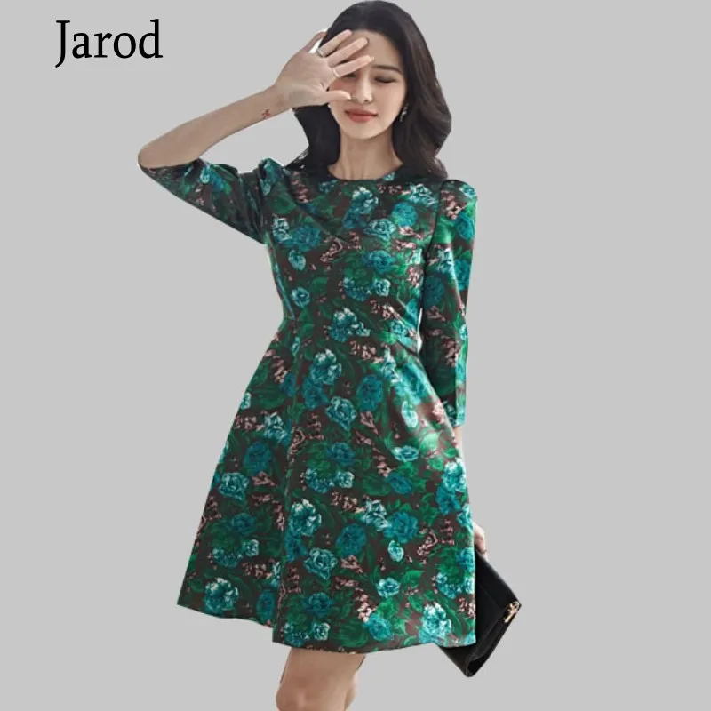 2020 весеннее женское платье Элегантное 3/4 рукав цветочный принт тисненое Роскошное винтажное зеленое жаккардовое платье повседневное мини ...